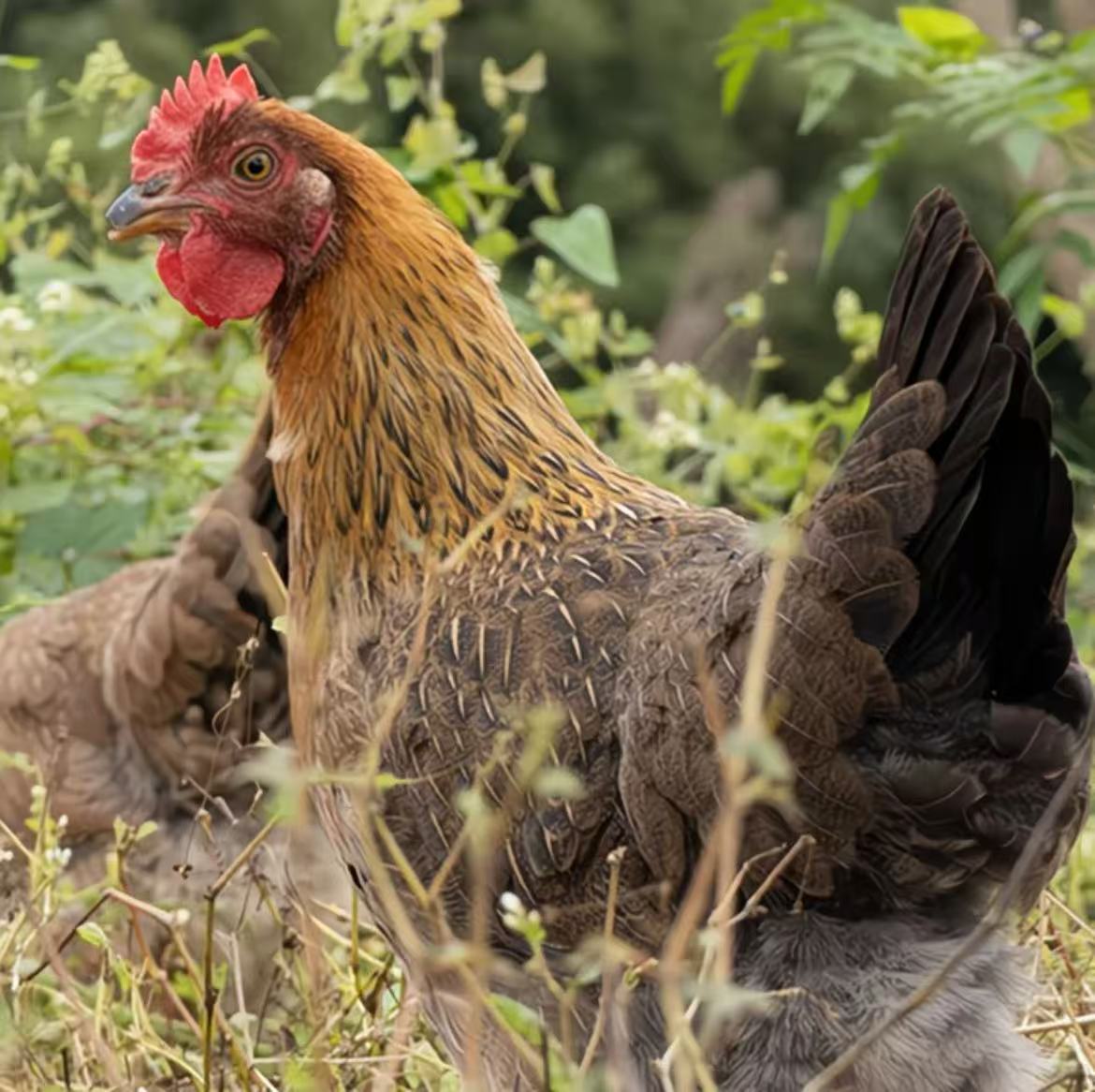 崇仁麻鸡老母鸡体型小巧紧凑、皮黄肉紧、青脚麻羽,是典型的地方优质土鸡品相,辨识度极高: